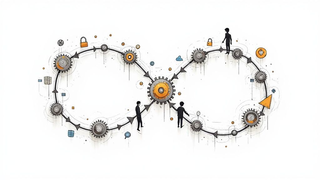 This integrated approach dismantles the traditional silos between development and operations teams, creating a single, streamlined value stream from a concept on a backlog to a feature running in production. The objective is to align teams around a shared goal: delivering high-quality software, faster.